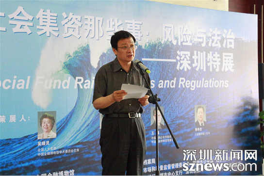 在展览开幕式上,深圳市金融办主任何晓军表示,近几年,互联网金融等新兴金融领域非法集资犯罪活动呈现增长态势,不仅严重扰乱了我市正常的金融秩序,也给投资者造成了极大的损失。对此,我市积极健全打击和处置非法集资工作机制,建立非法集资监测预警系统,逐步形成了各区、各部门密切配合,条块联动,群防群治的良好局面,成功侦破了一批大案要案,切实维护了我市金融秩序和社会稳定。