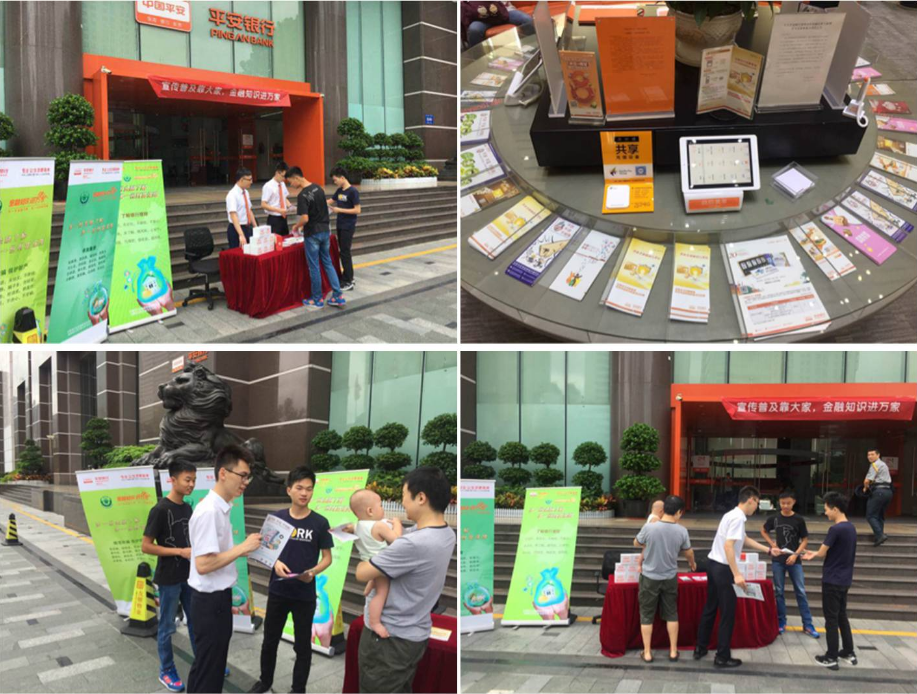 为加强公众金融知识宣传教育,提高社会公众防范风险和正确使用金融服务的意识,2017年7月22日,平安银行深圳分行率先在总行营业部开展了“金融知识进万家”宣传活动。本次活动以“正确使用金融服务,依法维护自身权益”为宣传口号,向公众宣传金融知识。