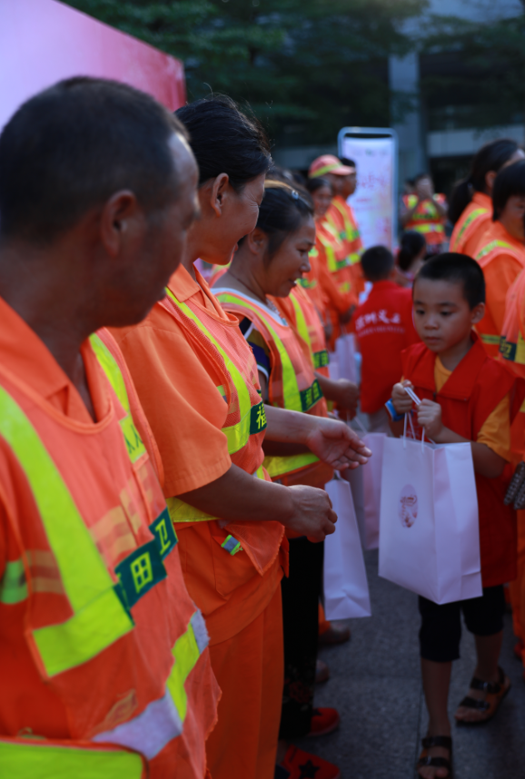 活动现场,深圳市关爱办、中国银行深圳分行代表主办方还向现场30余位环卫工人赠送了早餐、餐券及工作马甲等物资。