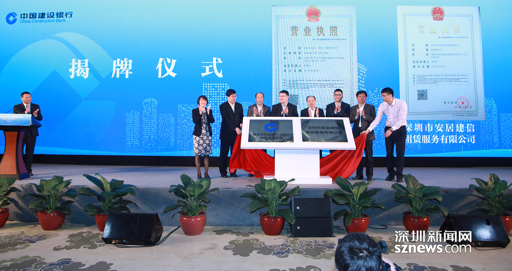 现场,建行参与投资的2家住房租赁服务公司——由建信信托控股的建信住房服务(深圳)有限公司(以下简称“建信住房”)及建行与深圳市人才安居集团合资的安居建信租赁服务有限公司正式揭牌。