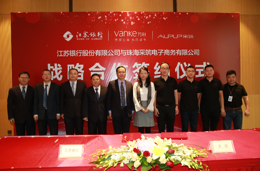 11月28日,采筑电商平台发布会暨与江苏银行战略合作协议签约仪式在前海万科国际会议中心成功举行。万科集团副总裁王蕴女士和江苏银行运营总监赵辉先生受邀出席仪式并致辞,江苏银行行长助理兼深圳分行行长李敏与采筑电商平台总经理都军代表双方签署战略合作协议。总行公司业务部周爱国总经理、深圳分行张庆光副行长等一行出席发布会暨签约仪式。