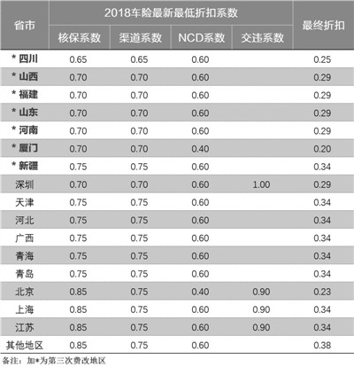 四川地区自主核保系数和自主渠道系数调整为0.65至1.15;山西、福建、山东、河南、厦门等地,自主核保系数和自主渠道系数调整范围均为0.7至1.15;新疆地区自主核保系数和自主渠道系数调整范围均为0.75至1.15。