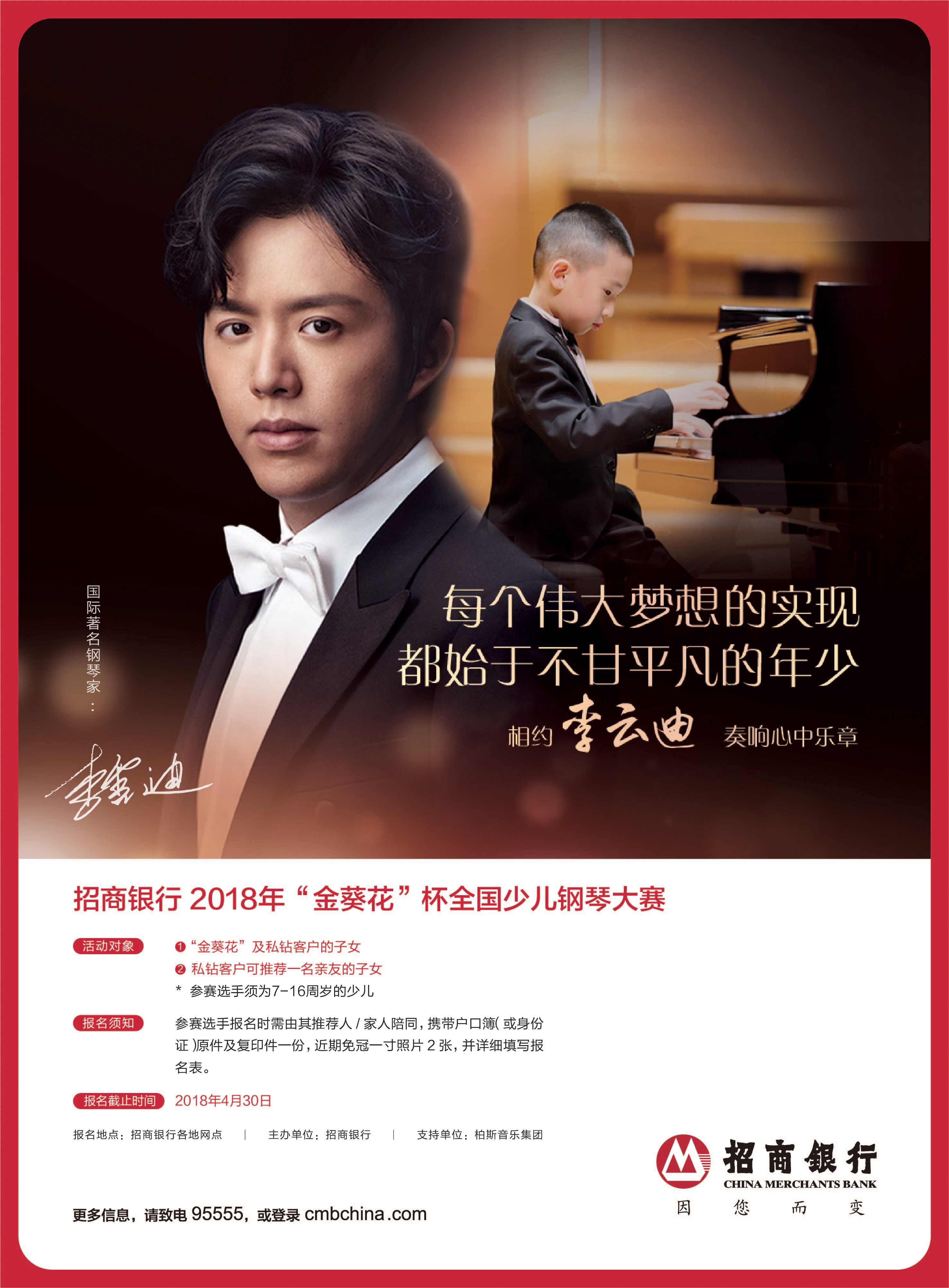 据大赛组委会介绍,本届大赛主办单位为招商银行,支持单位为柏斯音乐集团。报名时间截止至4月30日,初赛将在5月进行,7月下旬举行总决赛。招商银行“金葵花”客户、私钻客户7至16周岁的子女均可报名参赛。此外,私钻客户还拥有额外推荐一名选手参赛的权益。