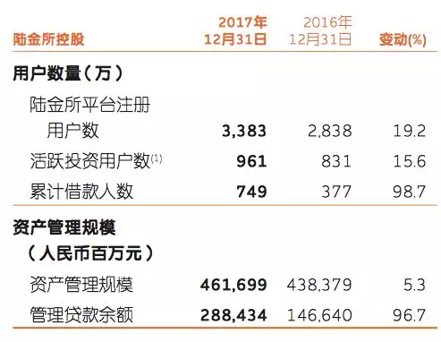 平安年报显示,2017年,在财富管理、消费金融、机构间交易等重要业务领域,陆金所控股继续保持快速发展,截至2017年末,资产管理规模达4,616.99亿元,较年初增长5.3%;管理贷款余额2,884.34亿元,较年初增长96.7%;首次实现全年整体盈利。