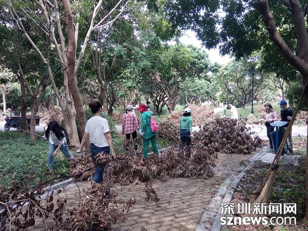 9月22日,台风过后小长假的第一天,深圳农村商业银行积极响应深圳市城管局和人大代表“人人行动,一起清洁美丽家园”的倡议,在全行发起了“爱心清理中心公园,还深圳一片干净祥和”的志愿活动,全行70多名员工和家属自发组成义工队,利用中秋小假期来到深圳市中心公园,积极参与搬运残枝断木,清洁落叶垃圾的活动。在清理公园路障过程中,深圳农商行员工分工明确,男士负责倒塌树枝、树桩的疏通与清理,女士则主要负责零散枝丫、落叶的清扫。而当清理至公园受灾最严重区域时,深圳农商行义工队成员齐上阵,两手并用,或是用力拖拽巨大的倒塌树枝,或是通力协作抬抱沉重的实木桩,来来回回不断将拦路树枝收拾整齐归拢到路边,以方便公园管理处人员后续处理。此次清理工作持续了约3小时,基本恢复了公园中心区绿道的通畅与整洁。路过的行人得知他们是义务进行清理时,无不驻足称赞,而参与此次活动的所有深圳农商行人也同样为自己感到骄傲。