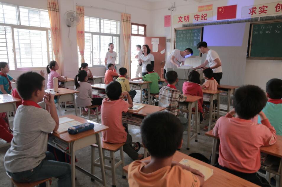 大成北梭小学位于信宜市的北梭村,山路十分崎岖、颠簸,经过长途跋涉,爱心代表团终于来到了小学,他们顾不上休息就开始了爱心教室小课堂。爱心代表团的老师们通过自我介绍和简单的互动交流,拉近了与孩子们的距离,赢得了他们欢心与信任。此外,老师们还为孩子们设计了一些别开生面、丰富多彩的课程,给孩子倡导爱健康爱生活的理念,促进他们的德智体美劳全面发展。
