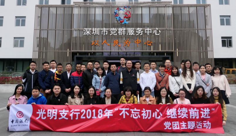 为进一步丰富党团组织文化,增强党员、团员干事拼搏、创先争优的意识,提升团队凝聚力和向心力,12月8日,中国银行深圳光明支行前往深圳市党群服务中心开展“不忘初心继续前进”党团主题活动,该行辖内中共党员、预备党员、发展对象、积极分子及共青团员共计50余人参加。