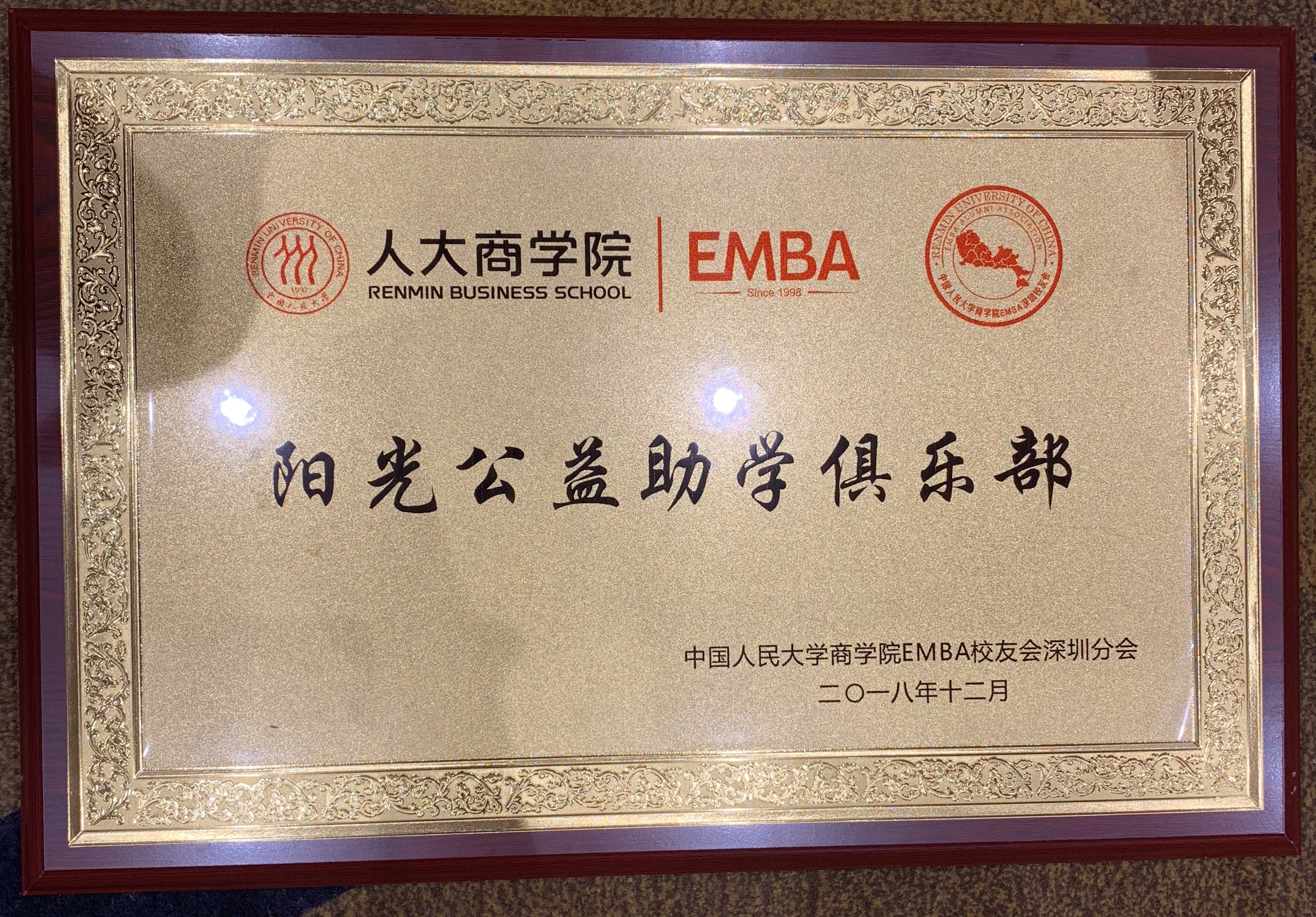 据了解,中国人民大学EMBA“阳光公益助学俱乐部”是为了广大热爱公益、支持公益的人大EMBA深圳校友,践行公益、援助偏远贫困地区学生而自愿组织成立的非盈利机构,是为人大EMBA校友打造的公益平台。