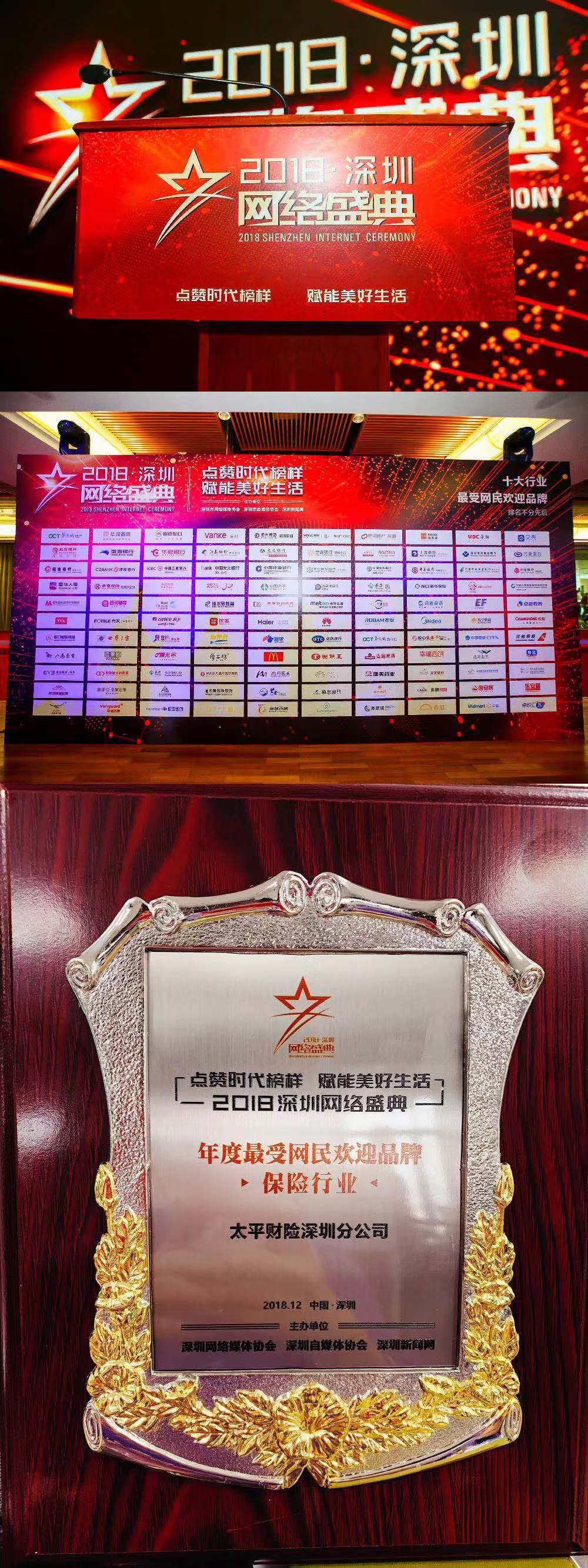 为弘扬主流价值,唱响深圳好声音,点赞深圳网络正能量,赋能美好生活愿景,12月26日,“2018深圳网络盛典”在市民中心成功举办,太平财险深圳分公司受邀参加了盛典。