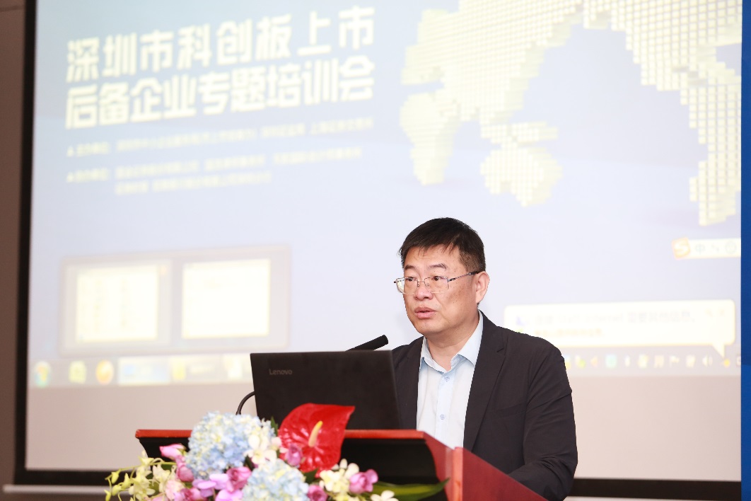 本次培训会由贾长胜局长致开幕词,贾局长提到, 深圳市中小企业局一直致力于扶持本地 中小 企业做大做强, 本次培训会旨在帮助 后备 企业深入了解科创 板制度安排和 政策导向、企业上市策略及上市流程等方面的内容, 助力深圳本地企业把握历史机遇 登陆科创板 ,借力资本市场开创新里程续写新篇章 。