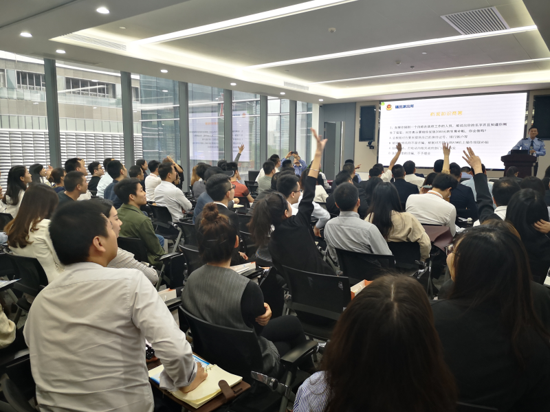 反诈骗知识有奖问答的现场互动环节掀起了讲座小高潮,皇庭中心商户代表积极踊跃回答问题,现场气氛十分热烈。