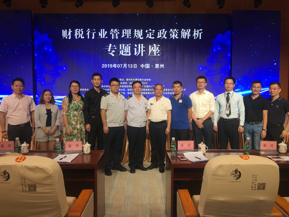 7月13日,招商银行深圳分行小企业金融客户部、惠州分行联合惠州市代理记账行业协会在惠州报业大厦3楼演播厅成功举办财税行业管理规定政策解析专题讲座。招商银行惠州分行作为活动协办单位,邀请了惠州市税务局何科长莅临现场。本次活动共邀约500位会计服务公司的相关负责人参与。