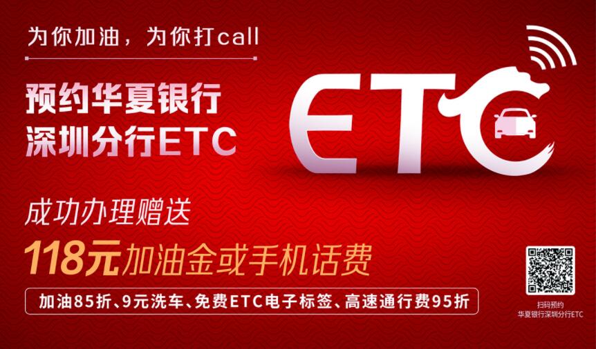 深圳新闻网7月26日讯 近期,华夏银行深圳分行推出“为你加油,为你打Call”ETC推广主题活动,成功办理华夏银行ETC即可获得118元加油金或手机通讯费,更可享受加油85折、9元洗车、免电子标签费、免费快递到家等多项优惠活动。该行积极响应政府关于取消全国高速公路省界收费站、实现不停车快捷收费的政策号召,满足广大客户便利交通、轻松出行的切实需求,让更多用户享受到ETC业务的政策红利。