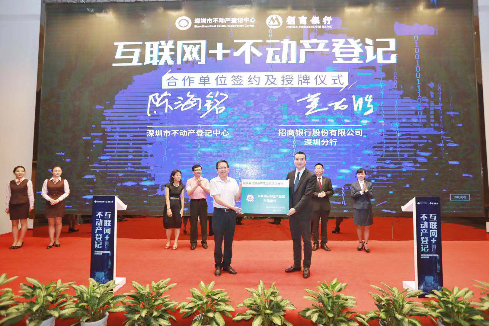 深圳新闻网2019年9月24日讯 今日,深圳市不动产登记中心与招商银行深圳分行举行“互联网+不动产登记”合作单位授牌仪式,并同步上线“不动产抵押登记全程电子化”在线申请服务系统,为企业和市民提供在线办理抵押权首次登记和抵押权注销登记服务。