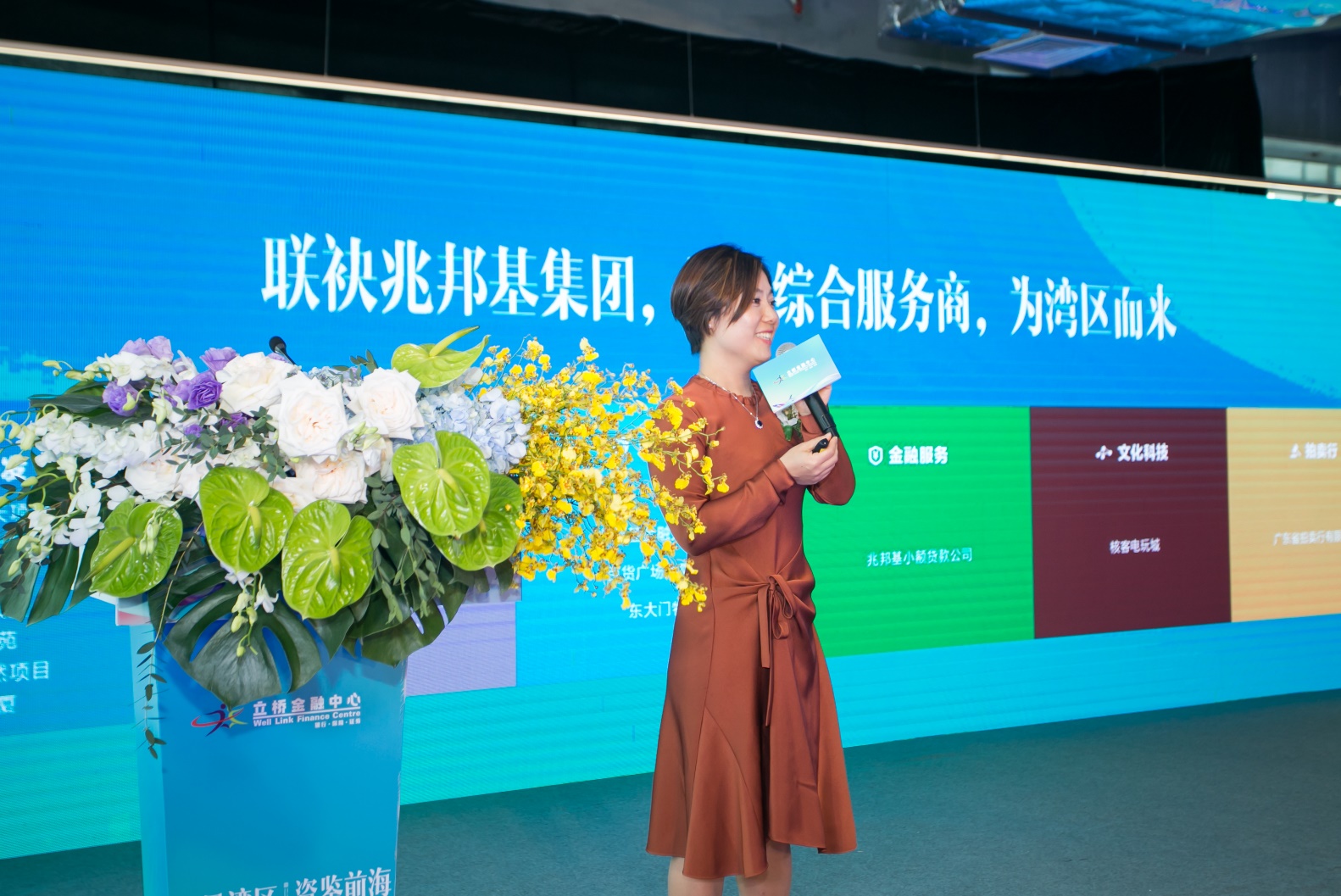 随后,兆邦基集团及立桥金融集团執行董事詹美清女士,代表主办方对前海立桥金融中心项目进行了精彩分享。她表示,粤港澳大湾区规划发展孕育了深圳国际化城市新的发展契机,深圳将发挥金融科技中心城市地位,以前海金融创新、南山科技创新为核心进一步落实深港合作示范区效应;针对全球商务发展趋势及深圳目前商务发展现状。她以全球顶尖科技总部企业办公环境为例,指出生态办公模式必将是未来商务主流;同时,对立桥金融中心分别从交通、物业、配套、生态、景观、运营和服务等多维度展示了立桥金融中心会呼吸的写字楼全新型生态办公理念,引得现场嘉宾赞不绝口,更对立桥金融集团、深圳兆邦基集团及立桥金融中心项目充满期待与信心!
