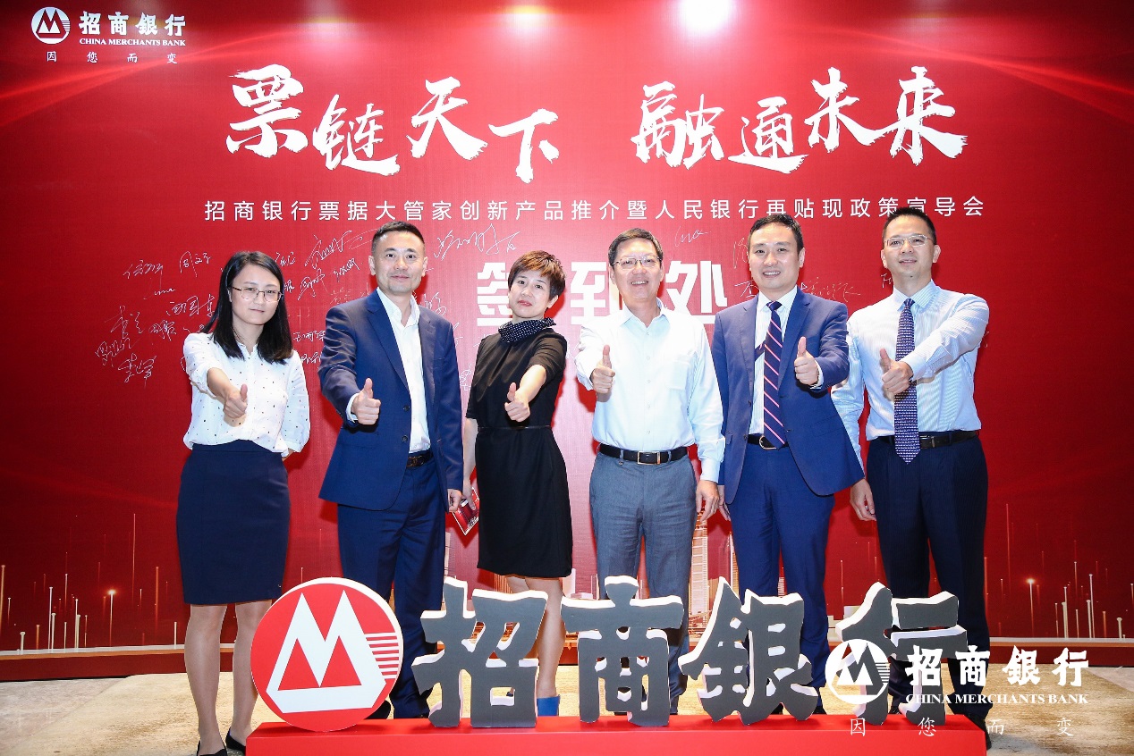 2019年11月15日,招商银行携手中国人民银行深圳市中心支行在深圳成功举办“2019招商银行票据大管家创新产品推介会暨人民银行再贴现政策宣导会”。本次推介会以“票链天下•融通未来”为主题,来自华为、TCL、富士康、中兴通讯、创维、深圳水务等100余家企业代表出席,共同探讨票交所时代下票据管理、融资以及创新产品实践。中国人民银行深圳市中心支行货币信贷管理处出席推介会,隆重介绍即将推出的人民银行普惠金融贴现政策——“商票通”。招商银行总行票据业务部黄斌总经理、招商银行总行研究院谭海鸣副院长、招商银行深圳分行曾令武行长助理及招商银行深圳分行票据业务部张衍松总经理共同参与了此次活动。