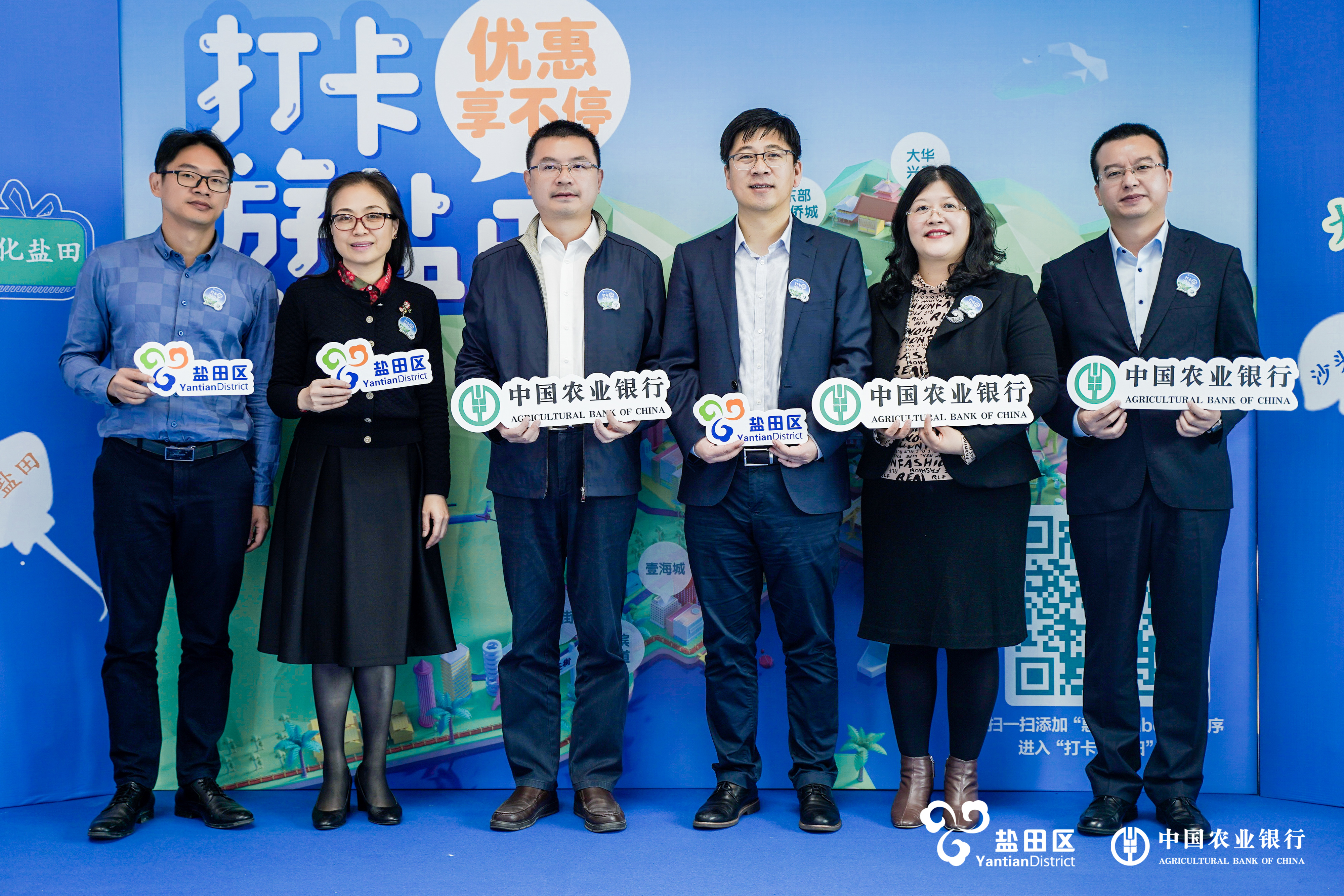 2019年12月17日上午,由深圳市盐田区文化广电旅游体育局主办,农行深圳分行承办的盐田区第二期“打卡游盐田”活动发布会在盐田ONE MALL商场举行。盐田区副区长罗毅、盐田区文化广电旅游体育局局长彭洁、盐田区文化广电旅游体育局副局长王智华、农行深圳分行副行长魏秉全、农行深圳分行信用卡中心总经理张珂等相关领导出席发布会。会上,盐田区副区长罗毅、农行深圳分行副行长魏秉全先后做开幕致辞与活动方案,盐田区文化广电旅游体育局局长彭洁、农行深圳分行信用卡中心总经理张珂现场签署了《盐田区第二期“打卡游盐田”活动合作协议》,宣告活动正式落地。