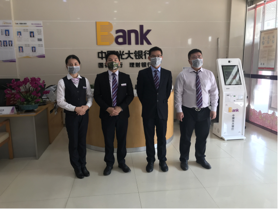 光大银行深圳宝安福永支行值班同事坚守岗位,配合分行调配工作,柜台同事邹俊娟、卢明科自春节大年初二后即返深准备值班工作,参与初三初四值班工作,客户经理助理方灿伟承担大堂值班工作。