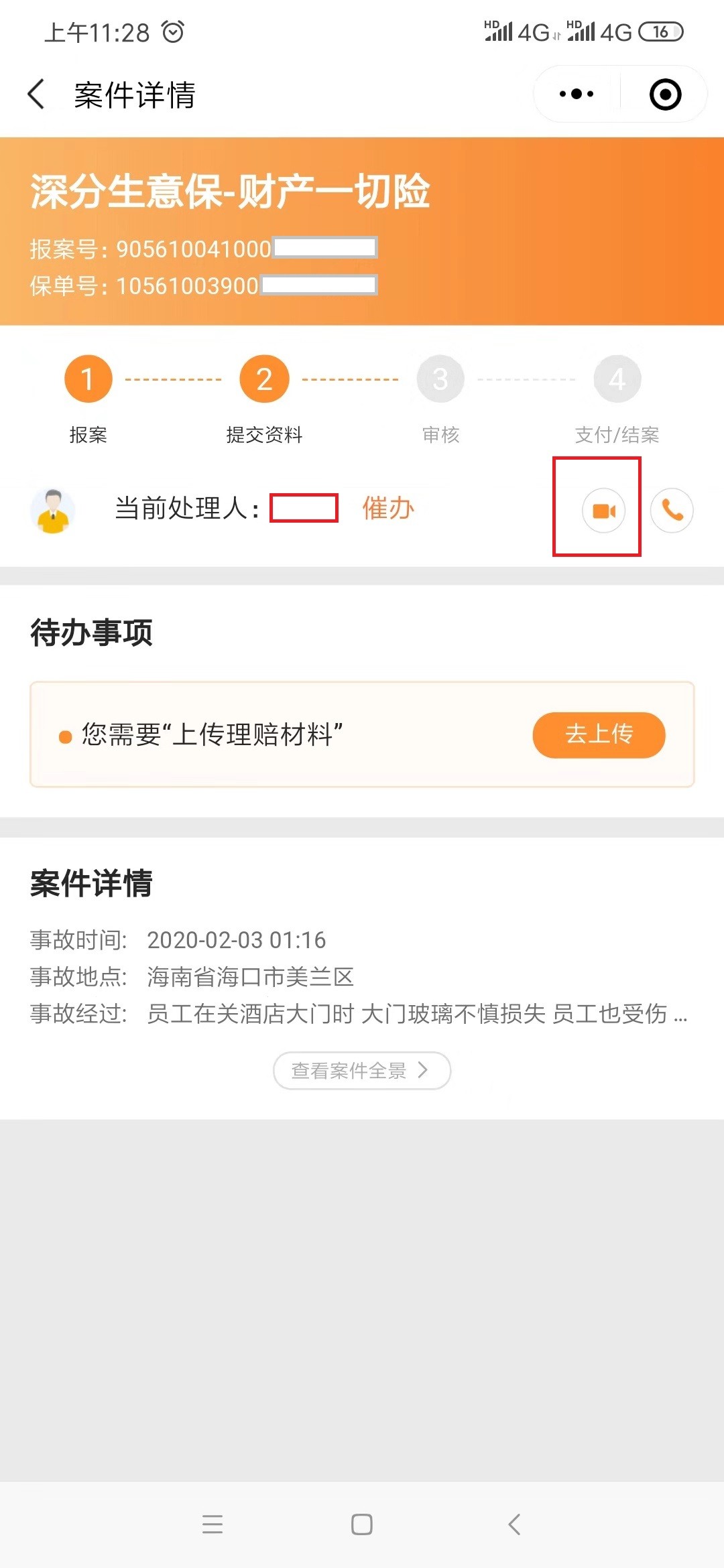 第四步:根据案情,可选择视频查勘功能完成线上查勘。