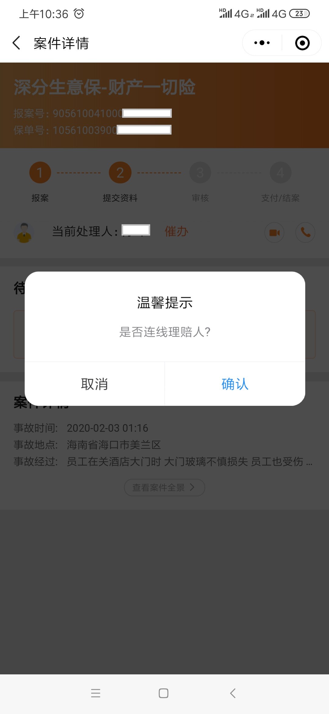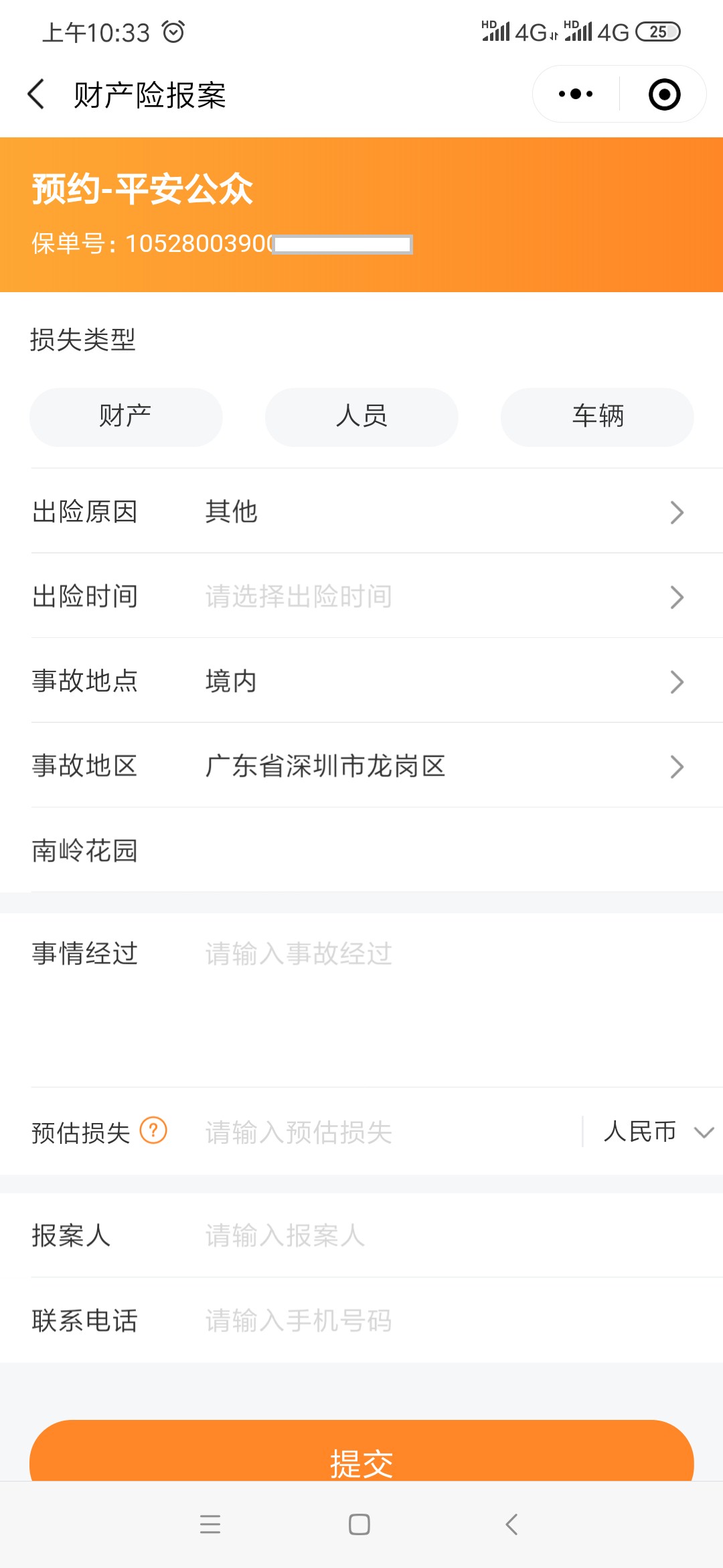 第二步:首页点击“我要报案”,填写基础信息。