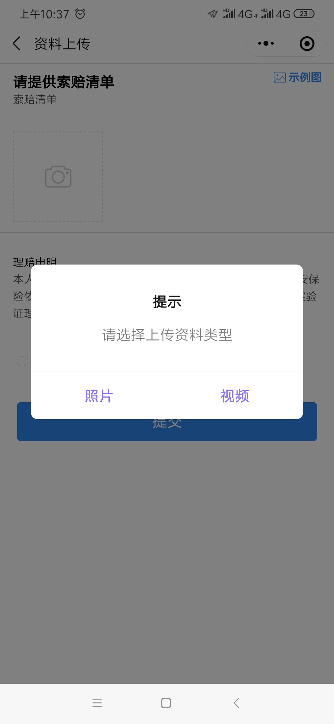第三步:根据指引,上传相关理赔资料。