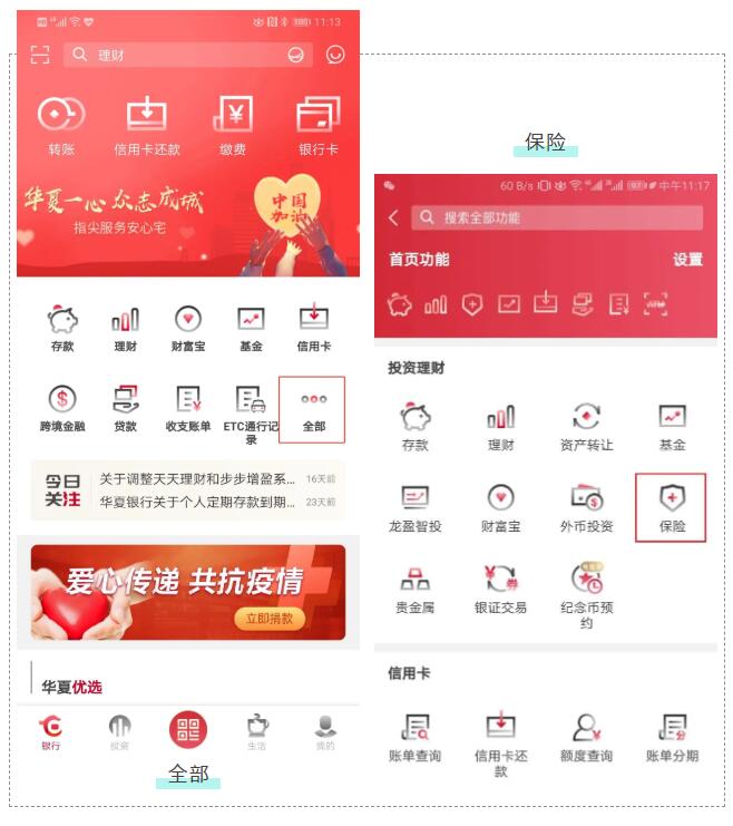 温馨提示:如果您尚未对您及您的家庭做保险配置,在疫情时期可以通过华夏银行手机银行APP足不出户配齐保险保障。您只需要打开华夏银行手机银行,在首页通过“全部”菜单,进入“投资理财”板块,点击“保险”即可进入保险板块,按照产品类型、场景选择您需要的产品进行购买。