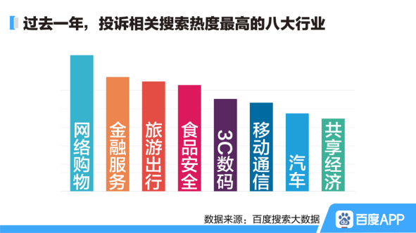 随着“315消费者权益日”深入人心,消费者维权意识不断增强。据百度今日发布的《2020年百度315搜索大数据报告》(下称《报告》)显示,过去一年消费者关于维权相关的搜索热度呈缓步上升趋势。在投诉相关搜索热度最高的八大行业里,网络购物和金融服务成了名副其实的“重灾区”。