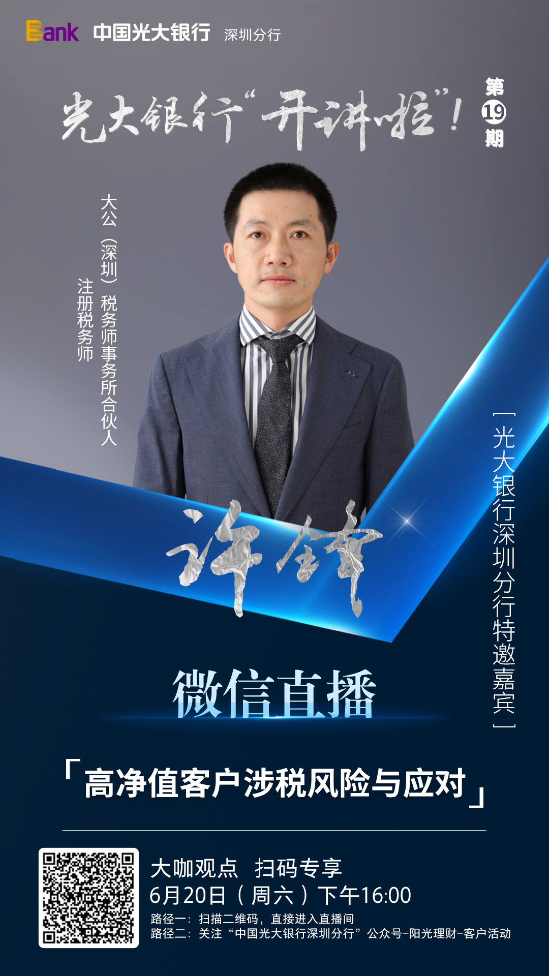 见证客户端•深圳新闻网2020年6月19日讯 6月20日,光大银行深圳分行携手大粤教育,在线开讲第十九期《光大银行"开讲啦“!》公益课堂。