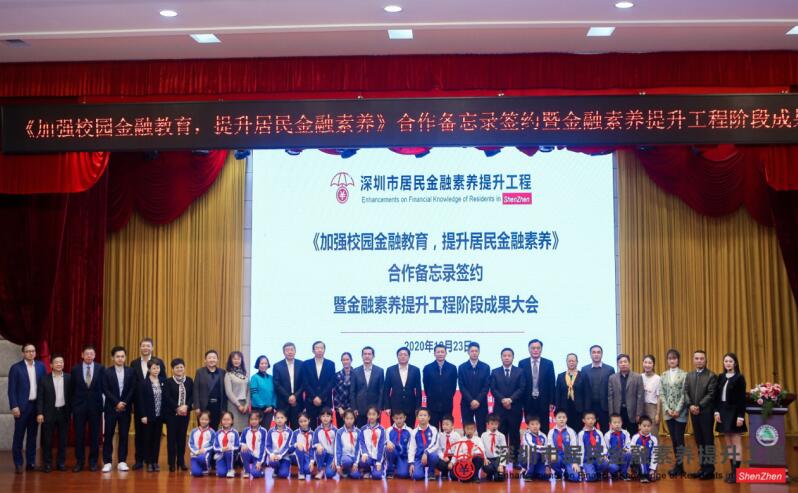 深圳新闻网·见圳客户端2020年12月29日讯 近日,由中国人民银行深圳市中心支行、深圳银保监局、深圳证监局、深圳市地方金融监督管理局、深圳证券交易所、深圳市教育局、福田区人民政府主办,深圳市民政局协办的《加强校园金融教育,提升居民金融素养》合作备忘录签约暨金融素养提升工程阶段成果大会在福田实验侨香学校举行。深圳市政府、相关机构领导,市各金融机构代表、市区中小学校领导、街道社区负责人以及侨香学校的师生们等逾200人出席了大会。
