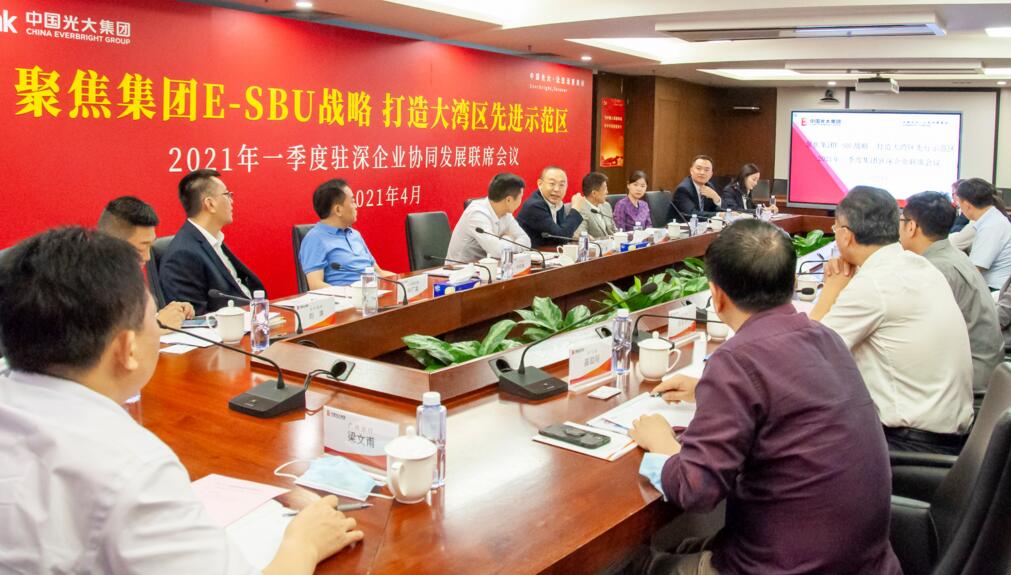 深圳新闻网·见圳客户端2021年4月29日讯 为了贯彻落实中国光大集团协同发展战略部署,更好地推动E-SBU协同工作高质量发展,4月28日,光大银行深圳分行联合集团驻深14家兄弟企业召开一季度驻深企业协同发展联席会议。深圳分行党委书记、行长韩学智,集团粤港澳大湾区协同发展办公室副主任、广州分行副行长皮唐,光大环境、山水酒店、光大证券、光大永明保险、光大信托等集团驻深企业负责人,广州分行、深圳分行协同发展部负责人参加了会议。