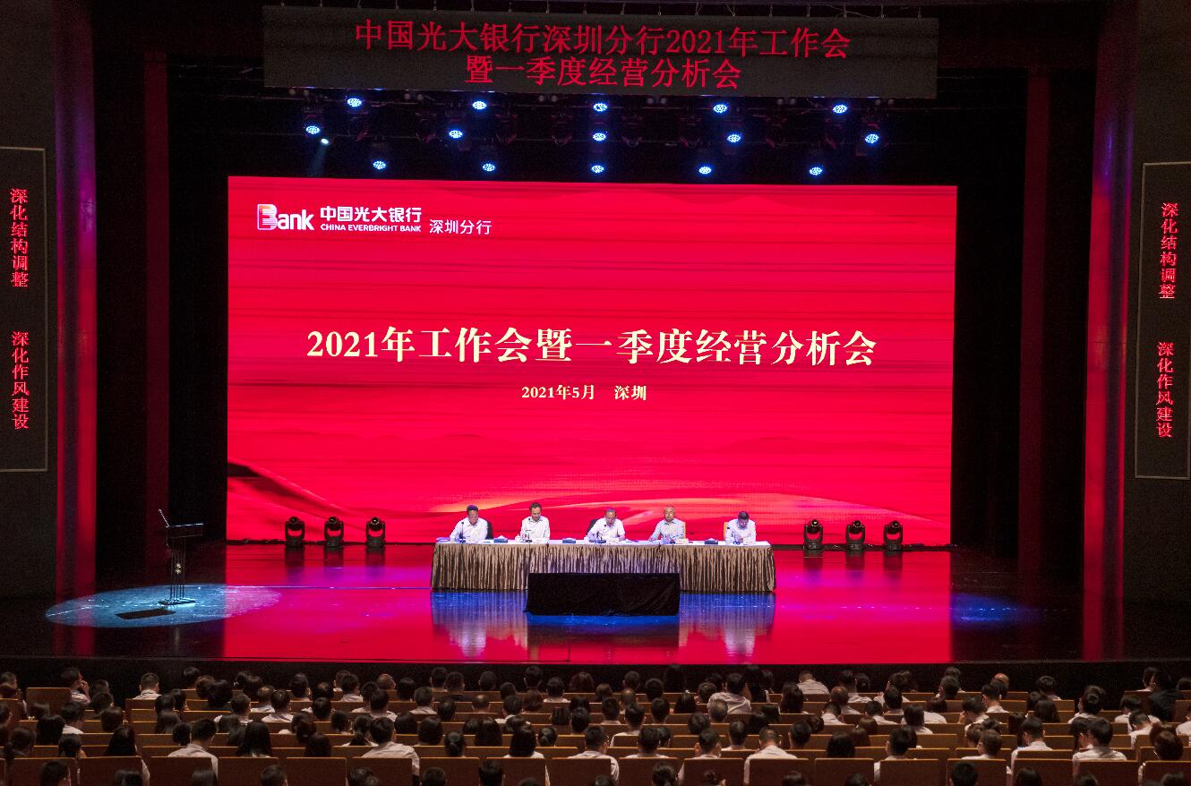 深圳新闻网·见圳客户端2021年5月16日讯 今日,中国光大银行深圳分行召开2021年工作会暨一季度经营分析会。会上,分行党委书记、行长韩学智深入传达贯彻集团、总行一季度工作会议精神,总结回顾了分行一季度经营管理情况,深刻分析了当前分行面临的困难局面和存在的问题,在此基础上,提出了分行2021年“深化改革力度深化风险管理深化结构调整深化作风建设”的工作方针,部署了全年经营管理和党建重点工作任务。