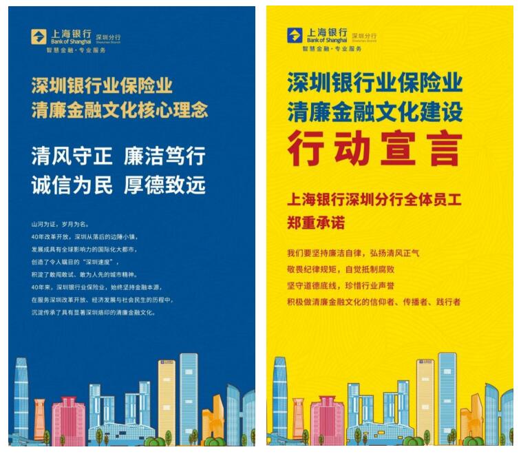 加速推进清廉金融文化建设。上海银行深圳分行将按照“深圳银行业保险业清廉金融文化建设年”的工作部署,结合分行党风廉政建设实际,一体推进上海银行业清廉金融文化建设和深圳市银行业协会清廉金融文化建设的工作要求,将清廉金融文化建设融入分行党、工、团各项活动中,把清廉文化建设嵌入到分行经营管理的各个层面,激发“廉”动力确保清廉文化宣导入心、清廉行动人人参与。(胡委鸿)