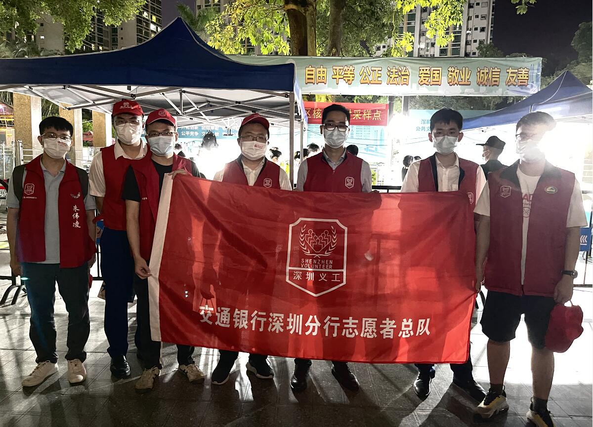 近期,深圳疫情防控警报再次拉响,交通银行深圳分行团委积极响应深圳团市委、深圳市义工联合会号召,向青年员工发出志愿服务倡议,广大青年团员闻令而动、起而行之,筑牢疫情防控青春战线。交通银行深圳分行团委、福田团支部、光明团支部和罗湖团支部等单位的志愿者深入社区,在烈日炎炎下,或披星戴月中,积极开展疫情防控志愿服务。