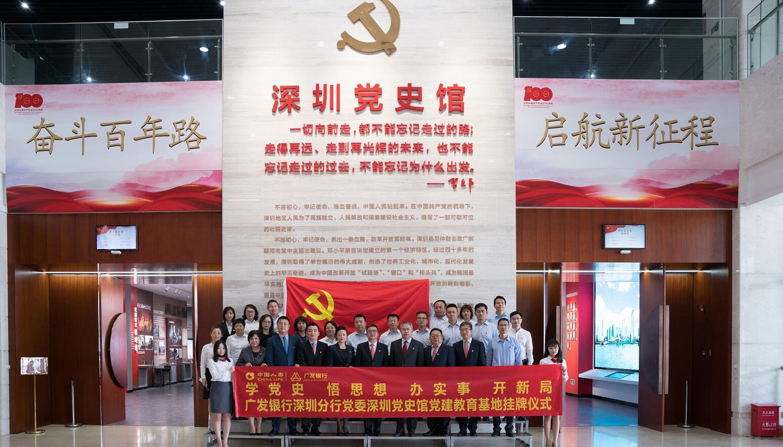 深圳新闻网2021年6月15日讯 近日,广发银行深圳分行在深圳党史馆方志馆举行深圳党史馆方志馆现场教学基地挂牌仪式。分行党委书记、行长王家铭同志,中共深圳市委党史文献研究室文献处处长詹延钦同志出席仪式并共同揭牌。
