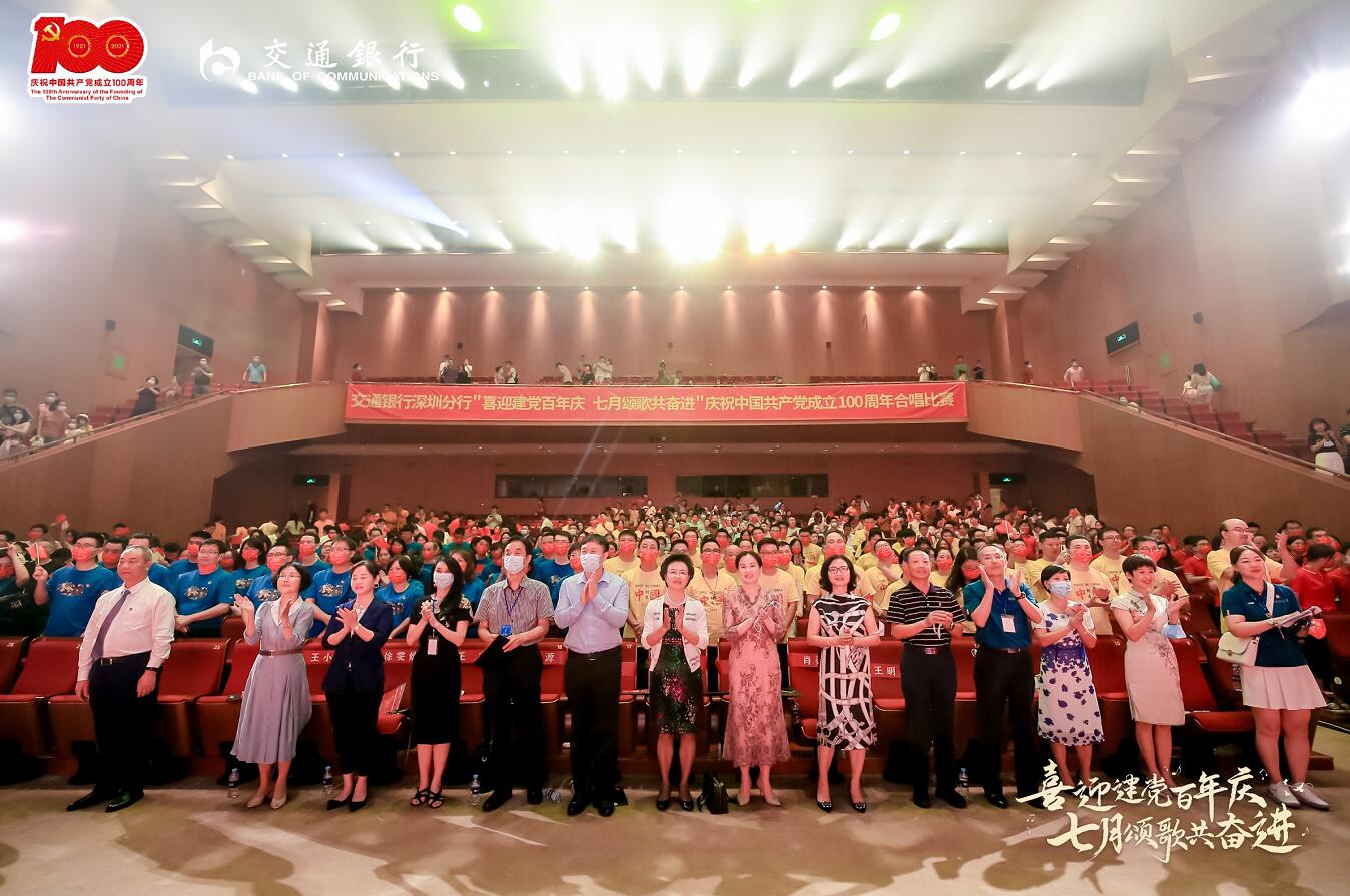 深圳新闻网2021年8月2日讯 为庆祝党的百年华诞,推进党史学习教育与红色教育相融合,近日,交通银行深圳分行在深圳大剧院隆重举办庆祝中国共产党成立100周年合唱比赛,深圳交行干部员工代表及家属代表约1200人现场参加活动,近3万人线上观演。