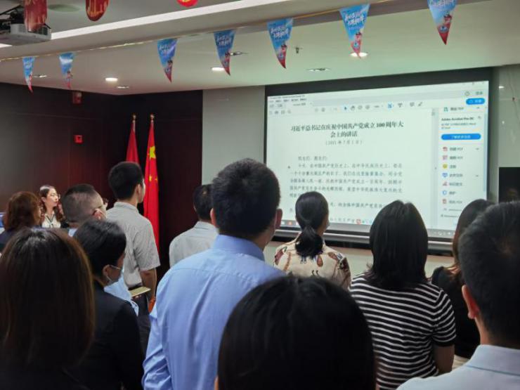 在主题晨会中汲取奋进力量。“七一”以来,该公司通过开展“铭记来时路,启航新征程”等主题晨会,组织全体干部员工走近“四史”,深刻理解党史丰富内涵,汲取奋进力量,进一步激励了广大党员同志在新时代新征程中建功立业。