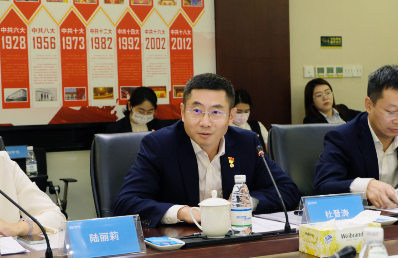 深圳新闻网2021年9月16日讯 (记者 朱琳 通讯员 杨丁香 )为进一步探索创新党建工作,着力共建党建工作新格局,擎画融合发展新蓝图。近日,太平人寿深圳分公司后援党支部与中信银行信用卡中心金融产品中心党支部、网络银行部党支部联合开展党建联建与业务交流活动。太平人寿深圳分公司党委书记杜晋涛同志、纪委书记温晓东,信用卡中心金融产品中心党支部书记严俊,网络银行部党支部书记王溦以及双方党支部党员、业务骨干共计27人参加活动。