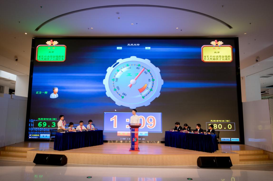 活动现场,来自明德实验学校(香蜜、碧海校区)、益强小学、侨香实验学校组成的辩论队,以“家长是否应该以金钱的形式奖励孩子完成任务”为主题展开了一场精彩的对辩。小辩手们各抒己见,妙语连珠,不断将现场气氛推向高潮。比赛现场精彩纷呈,笑声和掌声不断,引得过往行人驻足观看。通过举办此次辩论赛,提升了同学们的金融素养,展现出了他们的创造力和想象力,也进一步拉进了同学们与家长之间的距离,现场观众纷纷表示受益匪浅。