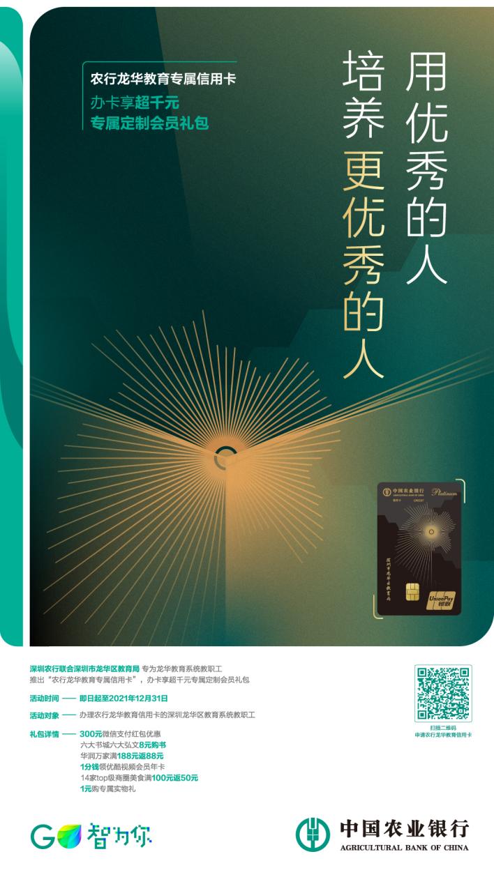 活动对象:办理农行“龙华教育专属信用卡”的龙华区教育系统教职工。