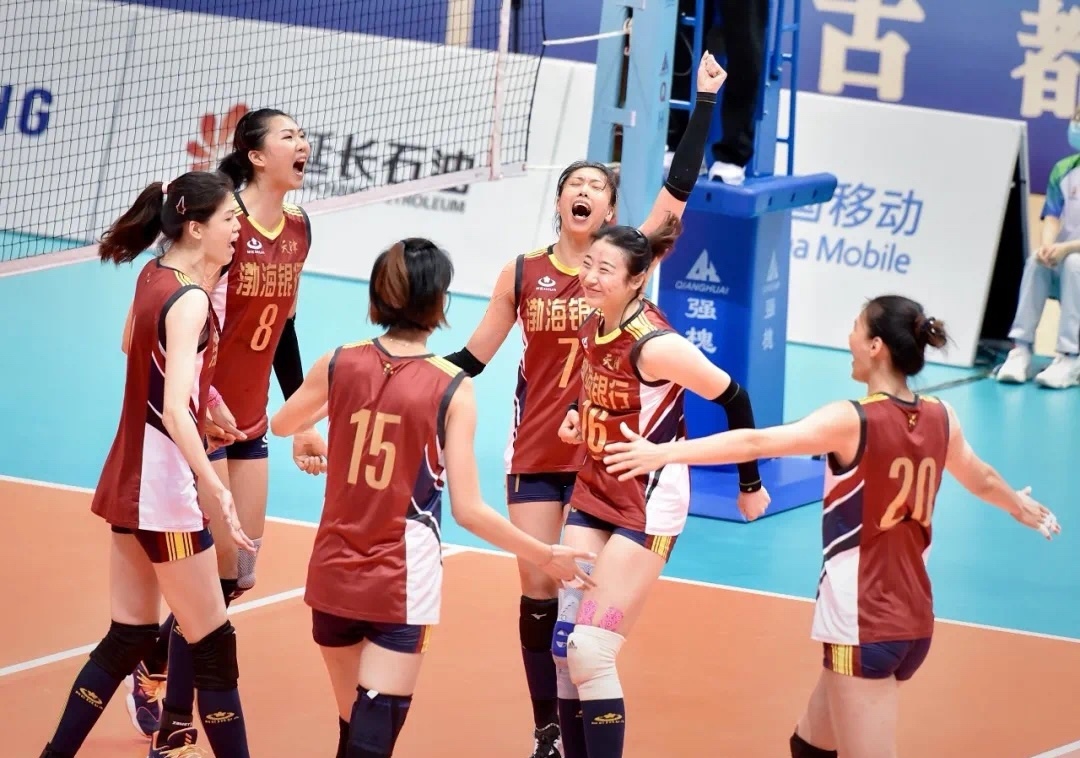 比赛开局,天津渤海银行女排占据主动位置,以凌厉的攻势顺利拿下首局胜利;第二局江苏队展开反扑,比分一度胶着,最终被扳回一局;随后两局,天津渤海银行女排展现出“锐意进取、迎难而上、顽强拼搏、争创第一”的女排精神,势如破竹,以25-18、25-17连胜两局。