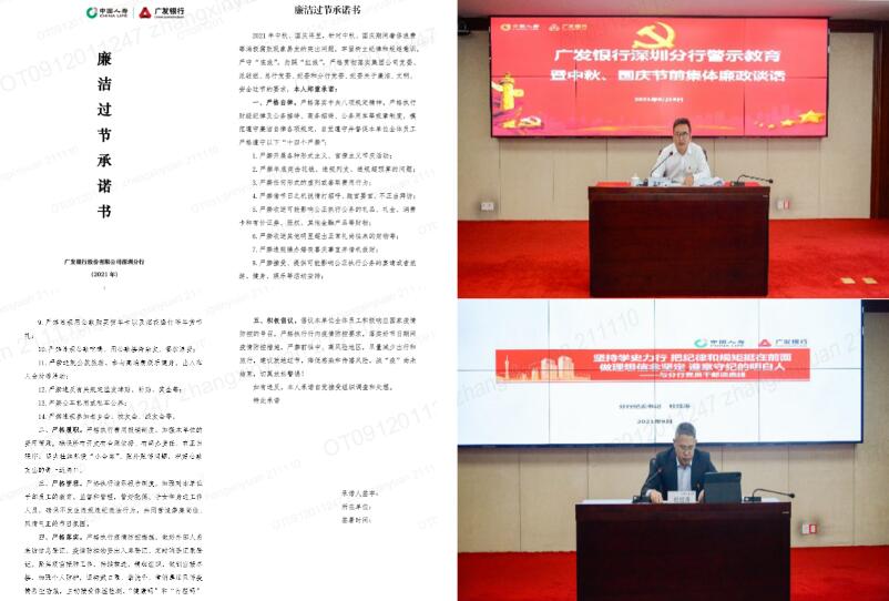 广发银行深圳分行开展中秋、国庆节前集体廉政谈话暨警示教育