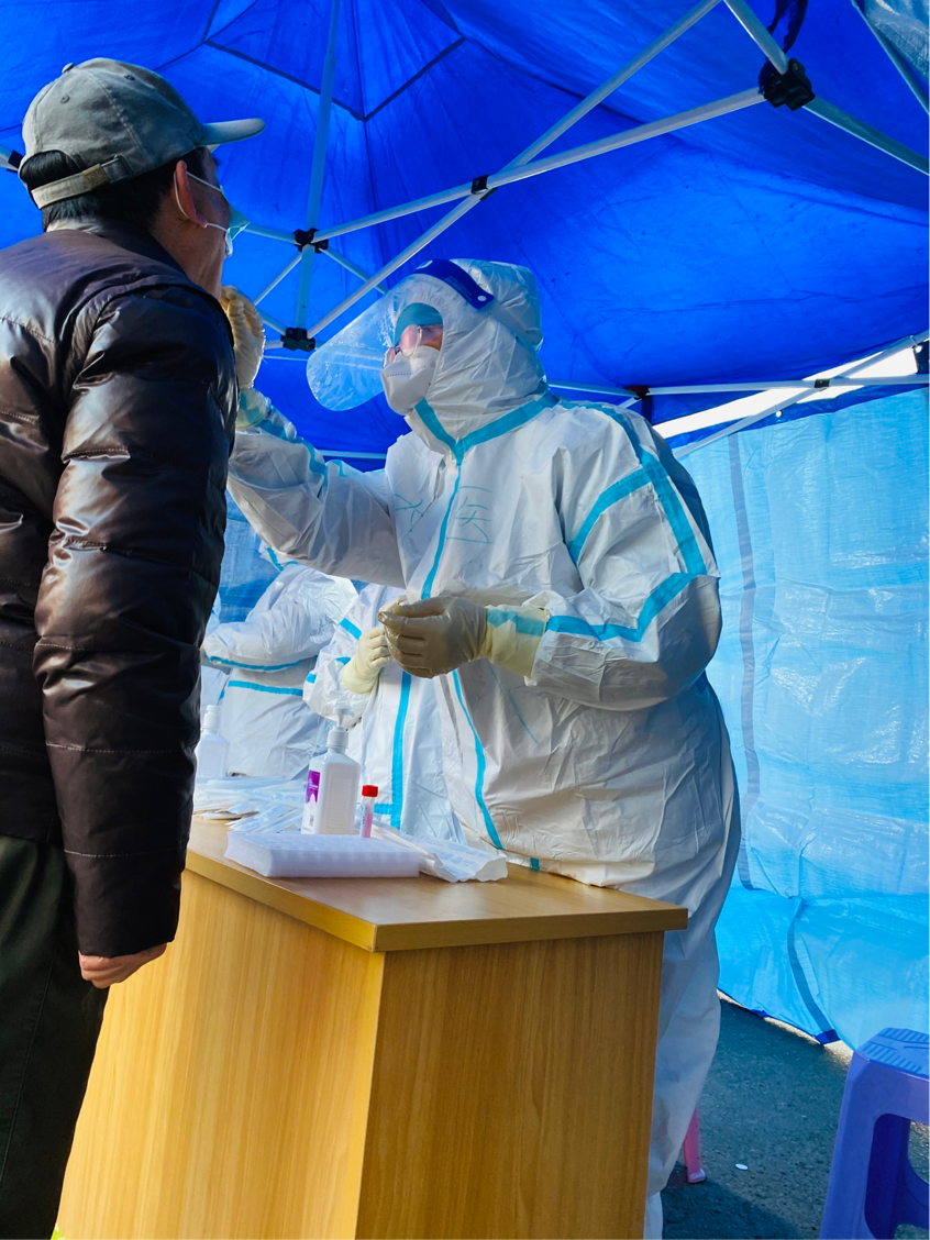 1月15日,中国太保旗下“太医管家”天津医学团队30名志愿者为战胜疫情的使命集结,奋战于人口密度大、老年市民占比高、上门检测要求多的天津东丽区,穿上防护服的“太医管家”志愿者,在凛冬的广场驻守、深入到一个个社区点位,用行动化作冬日里的温暖力量,成为抗疫一线的一道靓丽风景。