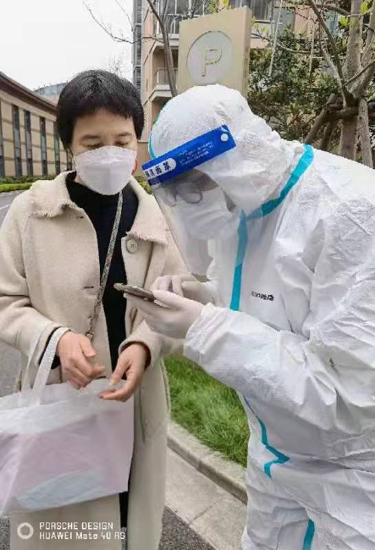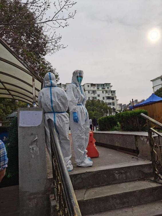 同样化身“大白”的还有刘濮铭,他协助医护人员对小区做抗原检测,帮7栋楼200余老人做二维码登记、检测,在小区有楼栋确诊后迅速加入守楼执勤,维持秩序,防止交叉感染。