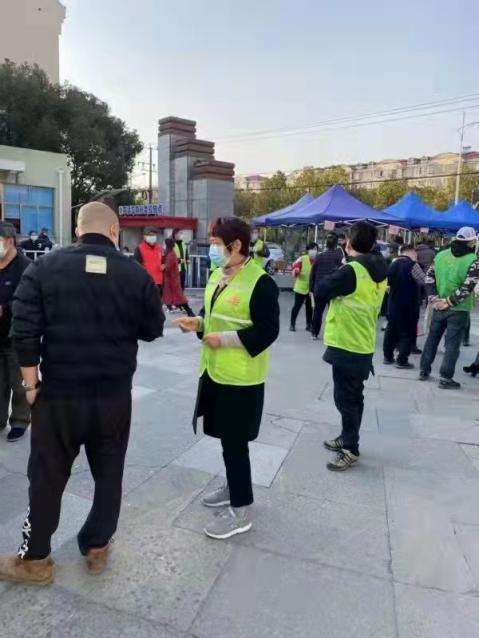 上图:郭秀芳在街道核酸检测中负责引导协调