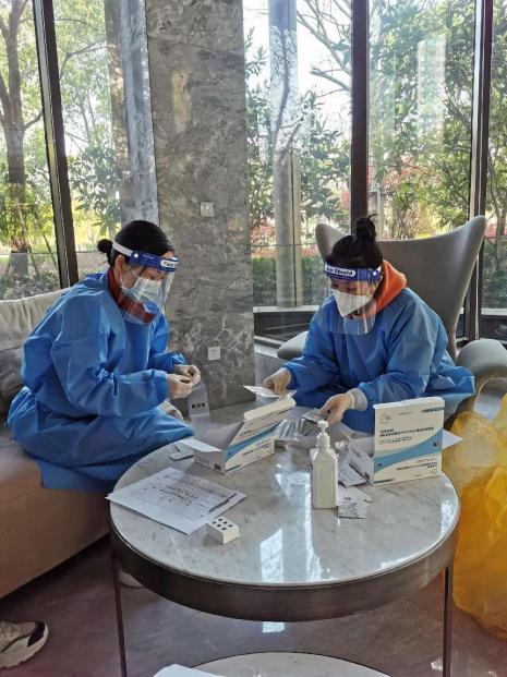 上图:石蓉协助社区核酸检测工作开展
