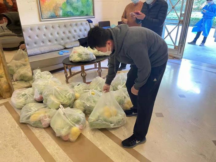 上图:黄天驰帮助楼栋分发物资