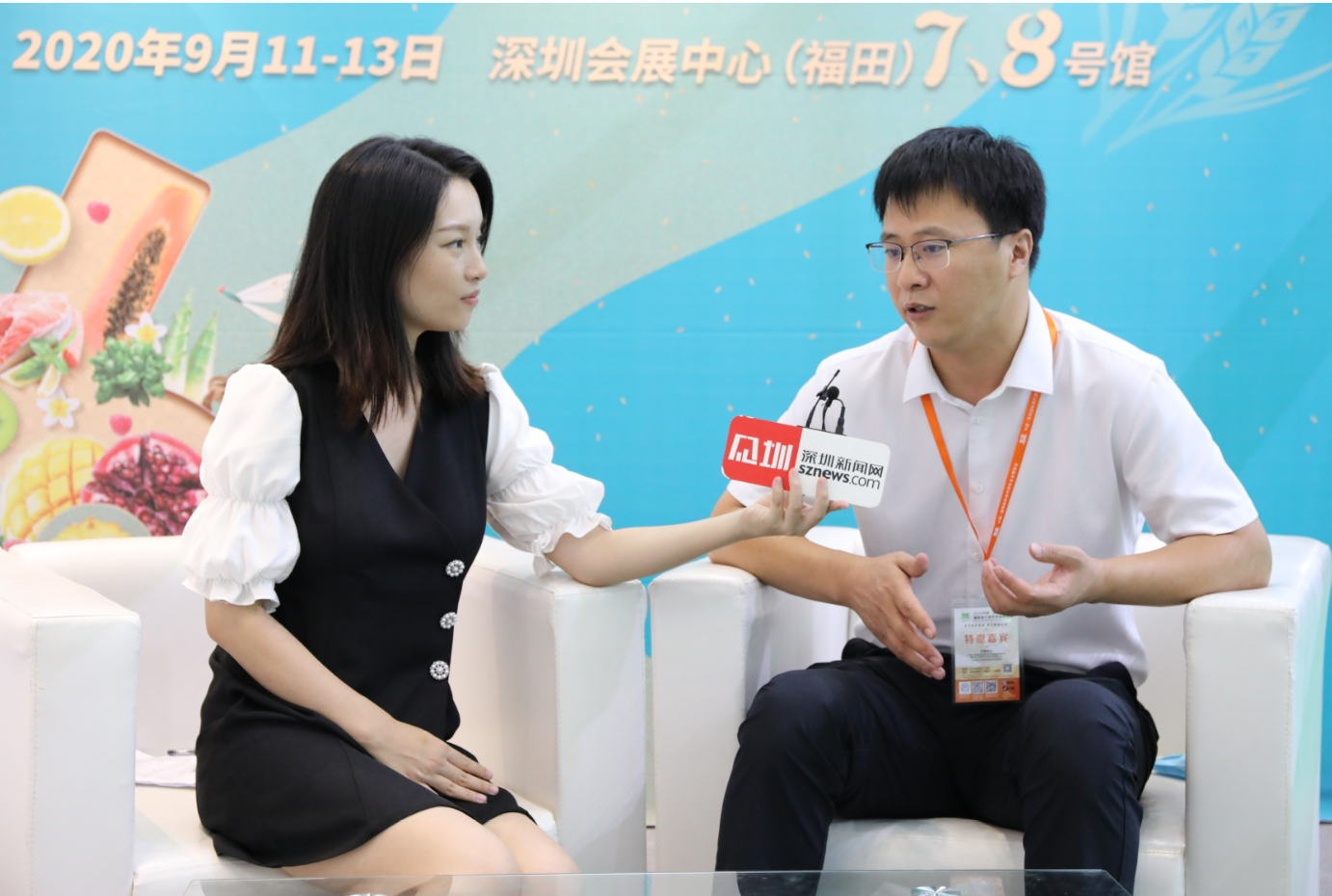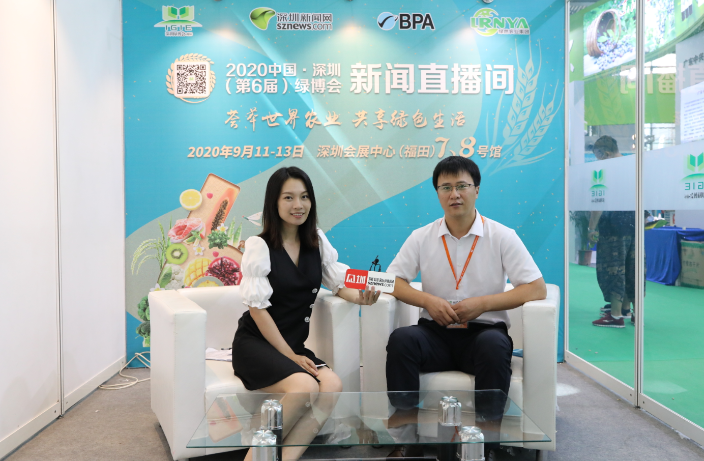 2020年第六届深圳绿博会上,黑龙江黑森绿色食品有限公司总经理黄玉敏,在新闻网直播间接受深圳新闻网采访。