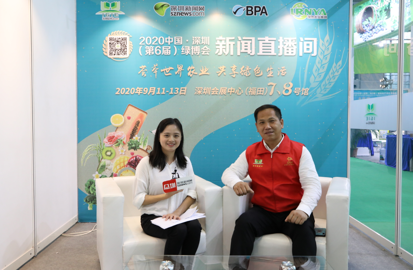2020年第六届深圳绿博会上,深圳市龙华小草义工服务协会会长夏东海,在新闻网直播间接受深圳新闻网采访。