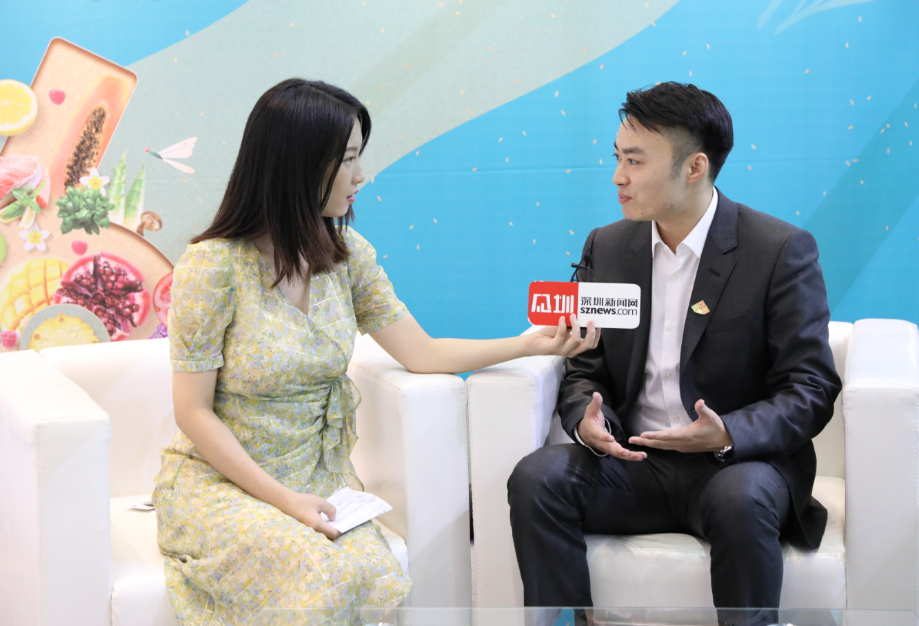 2020年第六届深圳绿博会上,国潮(深圳)三维码科技有限公司总经办主任田裕涵,在新闻网直播间接受深圳新闻网采访。