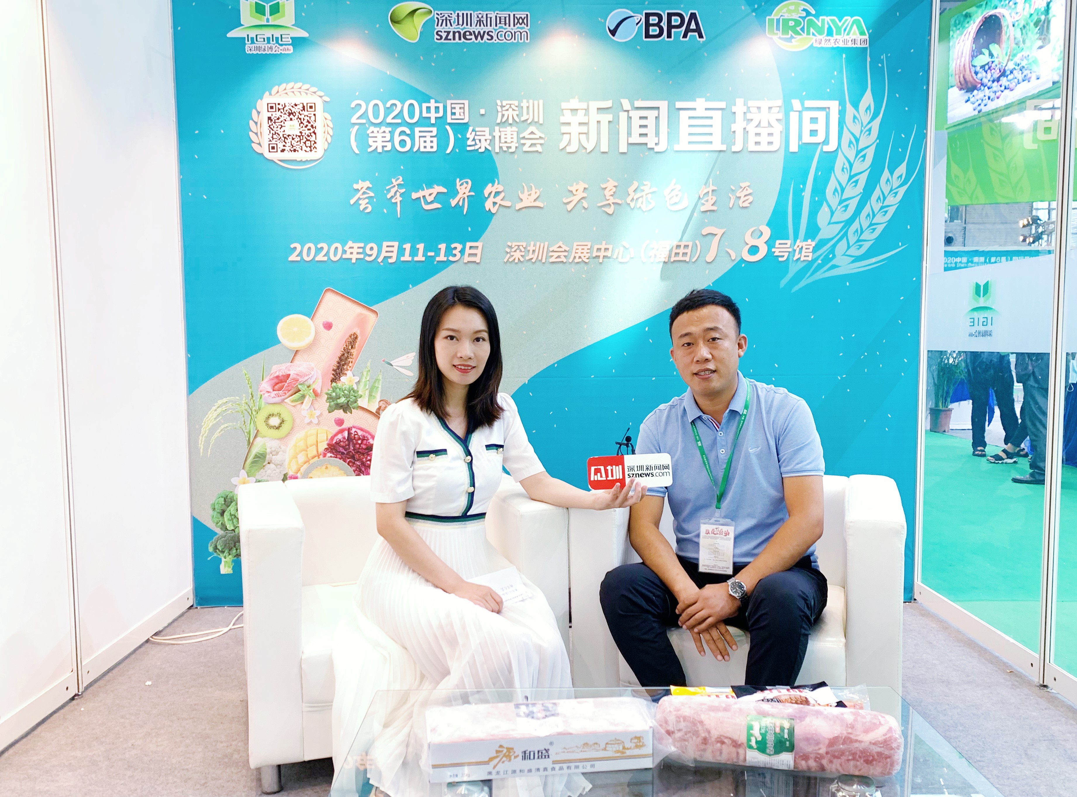 2020年第六届深圳绿博会上,黑龙江源和盛清真食品有限公司销售总监马奎,在新闻网直播间接受深圳新闻网采访。